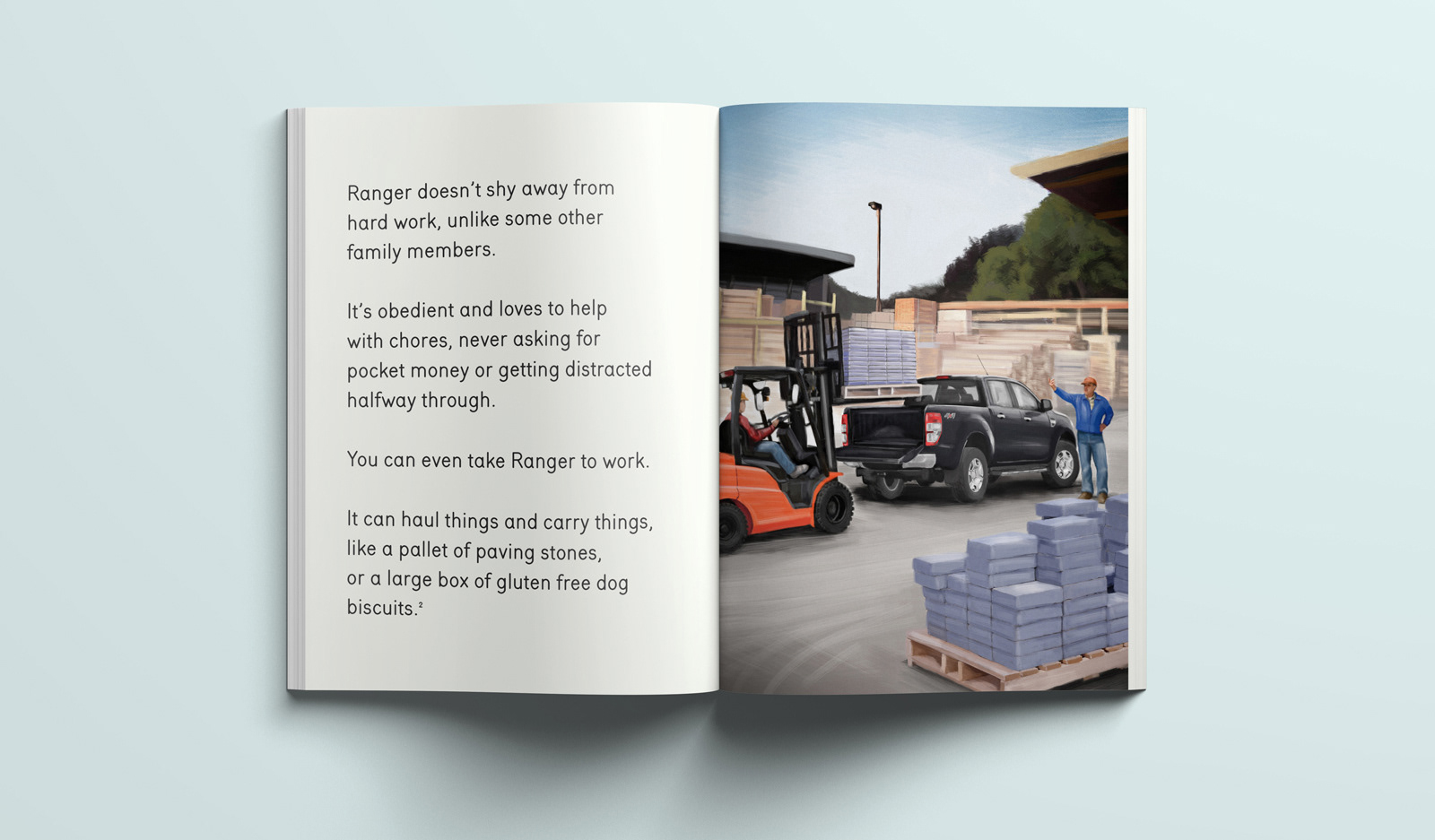 In New Zealand, fans of Ford's Territory and Falcon weren't happy. The motor brand was discontinuing two of its best loved models. To convince them of other vehicles, this tongue-in-cheek children’s book-style mailer tells the story of a family embarking on an adventure to find their ideal new Ford car.